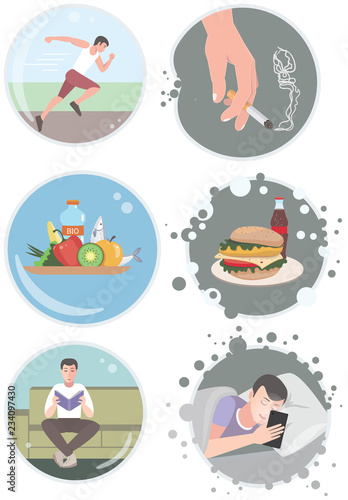 Page 1 Bad Habit Search And Download For Vector Illustrations Stock Images Macrovector. One of the biggest bad health habits plaguing twentysomethings is not getting enough sleep. Behavioral habits are a very common trait, without them, humans would almost be like robots. Improving health requires stopping the bad and starting the good by making healthy behavior easier to perform so that it becomes part of our daily. Making just a few changes in your lifestyle can help you live longer. Like nutrition, they can either make us sick or healthy. Today healthy lifestyle is becoming more and more popular both with the old and the young. Below are habits you need to drop or correct so that you can live a healthy and fulfilled life. Getting rid of bad habits for healthy ones. You may not want to admit the effect they're having on you, but if you're serious about having a healthy lifestyle, you need to change your bad habits, it's that simple! A recent study found that four bad behaviors—smoking. Behavioral habits leading to an unhealthy lifestyle? Smoking, drinking or taking drugs mean serious illnesses and even death from lung cancer or liver. We must understand the harm of bad habits for our health. Controlling your bad habits will not only help you live healthy but will make you a better person as well. These bad habits are preventing you from healthy living, there is no doubt about that.