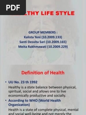 Hygiene Wikipedia. It is about physical, mental. • remembering the who's wider definition of health (figure 11), we can describe a healthy lifestyle as: Do you have a healthy lifestyle? The promotion of healthy lifestyle in jamaica 15. Definition by definition, the word health refers to the condition of your body, especially whether or not you are sick, and the word lifestyle refers to a person's way of living, which includes the things that they do, eat , etc. A way of living that helps you enjoy more aspects of your life. Healthy lifestyle a healthy lifestyle is a life that keeps you fit, energetic and reduces the risk of many diseases, based on the choices you make about your daily habits. • healthy eating is part of a healthy lifestyle. Health is not just about avoiding a disease or illness. Health depends on a healthy lifestyle. Impact of violence on health care kingston public hospital. What is a healthy lifestyle? World health organization regional office for europe. • nutrition education is lifestyle learning. Copenhagen nutrition policy, infant feeding and food security.