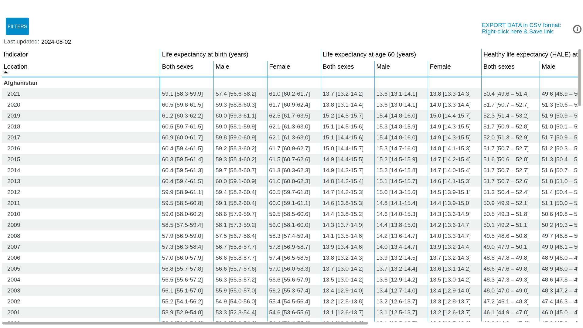 Health Expectancies At Birth And At Age 65 In The United Kingdom Office For National Statistics . Download Explore Select Columns Select Sort Order Select Pivot Column Link World Health Statistics Presents The Most Recent Health Statistics For Who's Member States.
