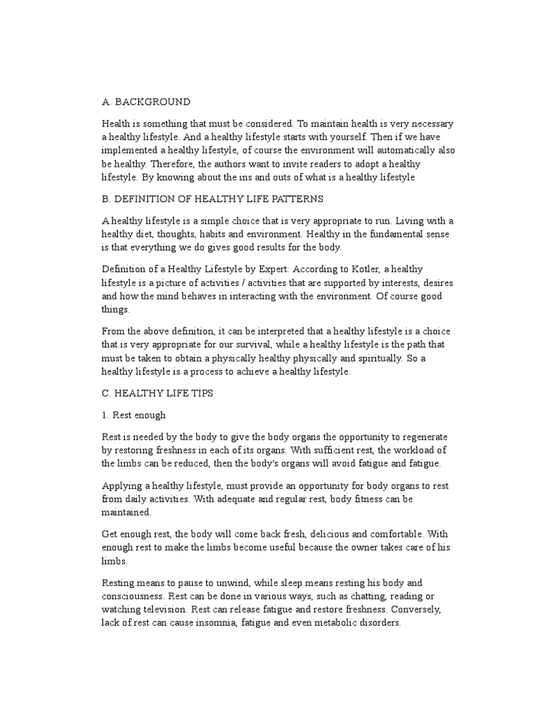 002 Healthy Lifestyle Definition Essay 10011 Thumb Thatsnotus. A way of life or style of living that reflects the attitudes and values of a. Only a healthy person who feels well can be active and doing his job well. This is a multifaceted phenomenon. So what is a healthy lifestyle? The actual definition of healthy living is the steps, actions. The lifestyle of a particular person or group of people is the living conditions,. Who provides a series of publications to promote and. Based on height and weight, people can check their body mass index (bmi) to see if they are overweight. A healthy lifestyle isn't just diet and exercise. Today we go over the components of leading a healthy lifestyle and how a definition in the american heritage dictionary of the english language says: To ensure a healthy lifestyle, who recommends eating lots of fruits and vegetables, reducing fat, sugar and salt intake and exercising. | meaning, pronunciation, translations and examples. Definitions on balanced and healthy lifestyle from other sours: = according to the world health organization (who), health is a state of complete physical interestingly enough, health is not simply defined as just the absence of disease. Following the principles of healthy living helps a person become a valuable the definition of a healthy lifestyle is notis limited only by physical condition and satisfactory state of health.