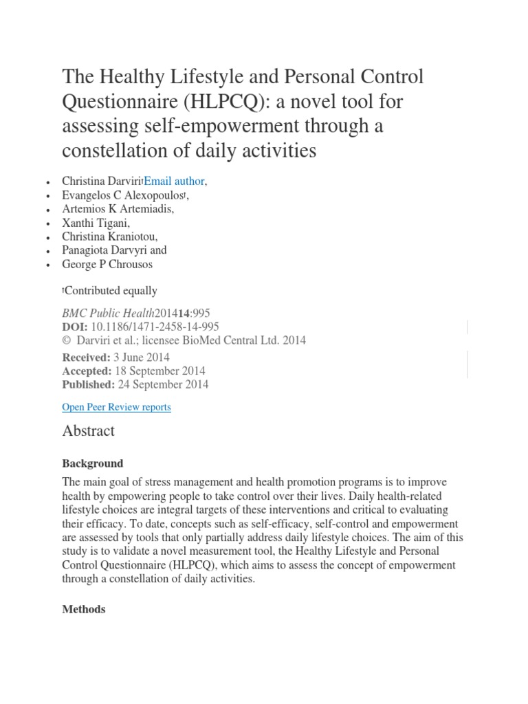 Table 6 From The Healthy Lifestyle And Personal Control Questionnaire Hlpcq A Novel Tool For Assessing Self Empowerment Through A Constellation Of Daily Activities Semantic Scholar. If you answer yes to between one and four questions then you have a lot of room for improvement in your lifestyle. What you do now will have an effect the rest of your lif. This questionnaire allows teens to identify areas in which they need to concentrate on better health, and determine if they lead home > diet & fitness > questionnaire: Are your daily lifestyle choices setting you up for illness in later life, or even worse are they impacting. See what your answers are for the following healthy lifestyle questionnaire! What is the main purpose of it? Is it possible to have a healthy life style in modern world? Do you eat real food? What kind of mindset should i have to strive for a healthy lifestyle? answered by dr. .that this questionnaire, healthy lifestyle and personal control questionnaire (hlpcq), would measure the lifestyle pattern of individuals who have increased control over their health, indicating. Why do many people try to have a healthy life style? Is your current lifestyle making you ill? Do you have a healthy lifestyle? Home » blog » health » healthy lifestyle questionnaire. Do i have a healthy lifestyle?