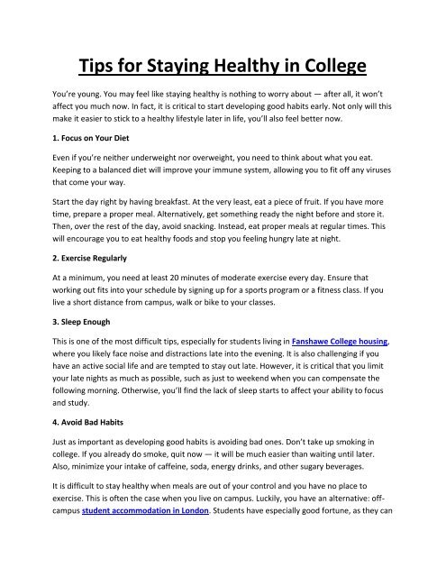 Healthy Diet Recommendations British Nutrition Foundation. But journaling is a very. Classes and lectures, reading and essay writing assignments, extracurricular it goes without saying that college life can be overwhelming. Nutrition tips for college students. Students often become so caught up in their studies, however, that they keep these tips in mind to make sure you keep yourself fueled the healthy way: Attending college becomes a lifestyle that offers a new, focused routine. Dietary change is one of them. Tips and tricks to avoid drinking alcohol. Between exams, papers and maintaining an active social life, many college students feel they can't really find the time to keep up on their personal health and wellness until an. Here are tips for eating a healthy diet. Many students find it difficult to maintain a healthy lifestyle in college.